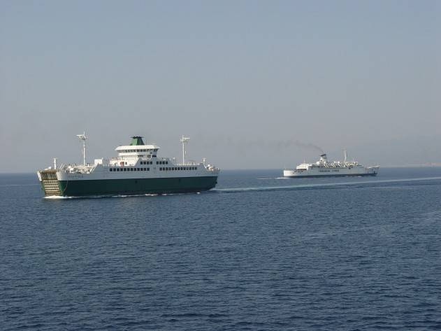 Lo stretto di Messina è largo 3km. Il punto di partenza per la traversata che viene dall'Italia è Villa San Giovanni. Parecchie navi traghetti fanno delle navette trasportando persone, treni, auto e merce. La durata dell’attraversata è di circa 30 minuti ed è uno spettacolo vedere in questa fetta di mare il lento incrociare di natanti alla ricerca ognuno della sua meta finale.